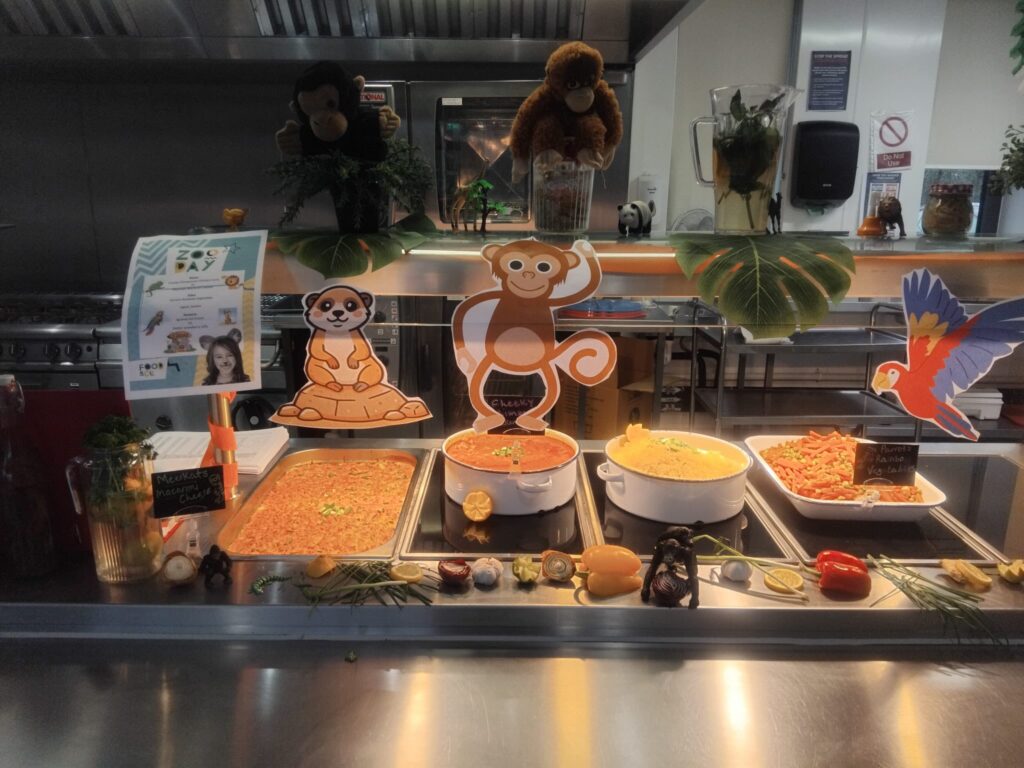 On the zoo-themed menu, the pupils enjoyed dishes like turtle shell tacos, parrot’s rainbow vegetables, elephant trunk fries, monkey cookies, and beautiful fruit flowers! A delicious feast combined with colourful decorations and fun fact adventures, taking a wild twist on school lunches.
